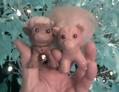 More on Black trolls. There were black trolls pruduced by the Dam company at diferent times. I have two small ones marked 1977 and an eight inch vintage black dam troll marked 1961. the fact that not as many of them were made is one reason they are so hard to find . All of the black trolls I have were bought outside the United states.