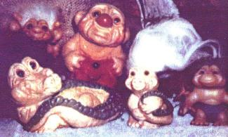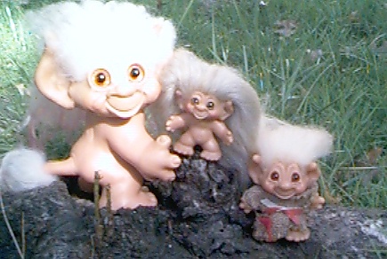 FOREST TROLLS Did you know that two hundred years ago certain people in Europe actually believed that trolls were real! Many Europeans (namely scandinavians) walked very carefully through the woods in those day's, in fear of coming across a troll. Trolls were not the cute little figures with wild hair we know them to be today. Back then trolls were large evil giants, that lived deep in the forests and in hills and caves. They ate just about everything, including people. It was downright dangerous for people to wander too deep into a forest.. With no modern technology, little knowledge of the different types of animals , no good maps or airplanes to come look for you when you got lost, venturing into a forest was very scary, to say the least. Those lucky brave souls that found their way in and then back out of the large uncharted wooded areas probably had many stories to tell of strange noises and creatures unfamiliar to them. Perhaps this is when some of the folklore started. Today, of coarse, we know that trolls only exist in our minds, or do we? After all what do you think big foot is?