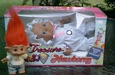 TREASURE TROLLS by ACE NOVELTY CO INC. are toy trolls produced in the early to mid nineties. They have wishstones in their bellies. If your lucky you can still find them in chain stores.
