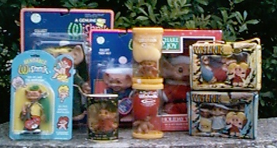 These guys are called moon GOONS, not moon monsters like many of us thought. They are marked "L KHEM 1964". Lynn was kind enough to send some information on them. She bought one in a store 35 years ago where they were sold nude and marked as moon goons. Lynn also told me that she saw a web site that claimed L. Khem was marketed by Dykins Sales Inc. The smaller ones sell for 20-60 dollars, the larger ones are hard to find and sell for over one hundred dollars. There is more information about these guys on the 3 inch page. Hey if you dig aliens please check out my astrosnik page below! Thanks Lynn!