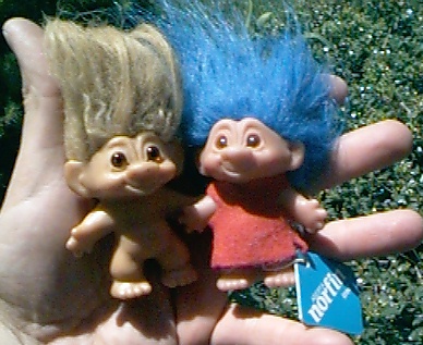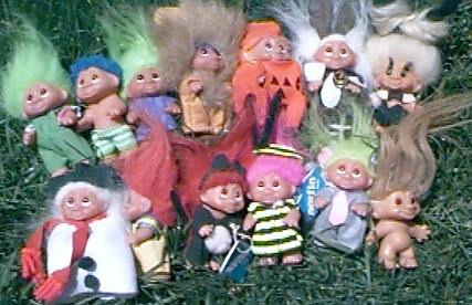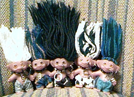 Kewl, they are trolls made by RASTA CO. of California. They have the most awesome outfits. Some have peirced eye brows. Some have peirced belly bottons and toes. Many of them seem to have nose rings! Their hair is Yarn but very well made and intact. I beleive the yarn resembles dread locks. I found these guys at new age shops and on the board walks of Jersey and Deleware. They sold for about eight to ten dollars, I'll bet that price will double or triple in the years to come when people can no longer find them. Grab them if you see them!!