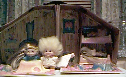 Ideal made this and several other troll houses. This is called the "stik shack" It is shown here opened. There are two sides. The other side has a beach scene and when it is closed it looks like a big shack house. It is harder to find than the other ideal houses. I beleive its value is about 75 dollars.